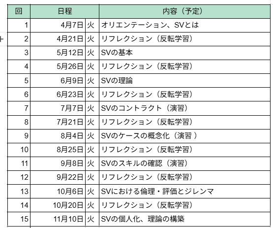 2日間の研修ののちに、スーパービジョン4回とキャリア面談3回の体験に進みます。